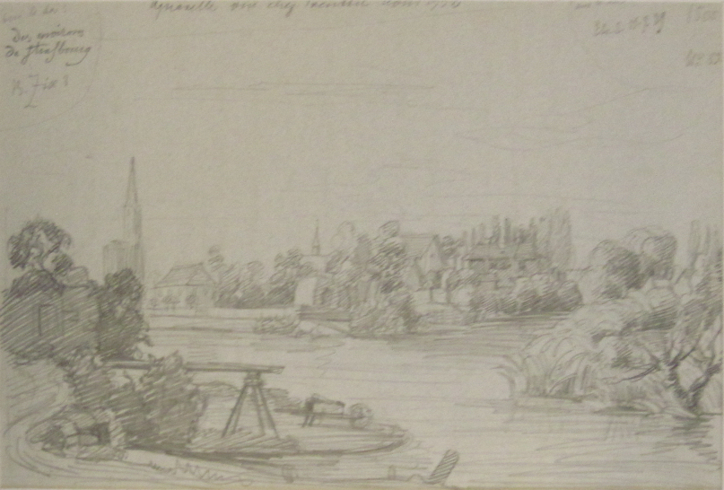 AQUARELLE VUE CHEZ TRENTTEL AOUT 1932 (MINE DE PLOMB, H.) ; SUR LE DOS : DES ENVIRONS DE STRASBOURG B.ZIX? (MINE DE PLOMB, H.G.) ; CACHET DU CABINET DES ESTAMPES ET DES DESSINS DE STRASBOURG