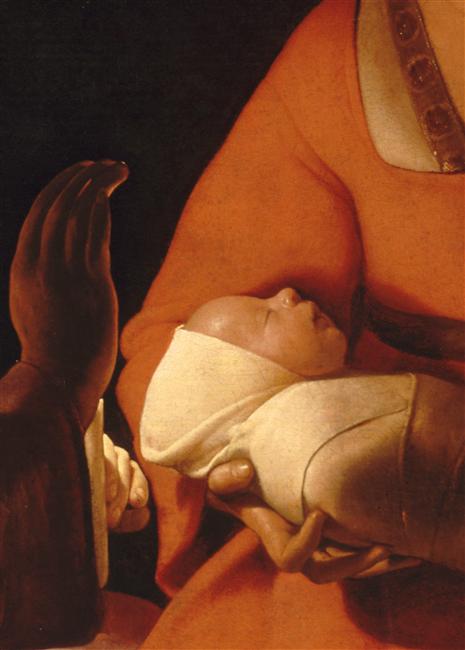 figures bibliques (?, Vierge à l'Enfant, ?, serviteur, chandelle, éclairage, effet de lumière, robe, coiffe, amour maternel, ?)