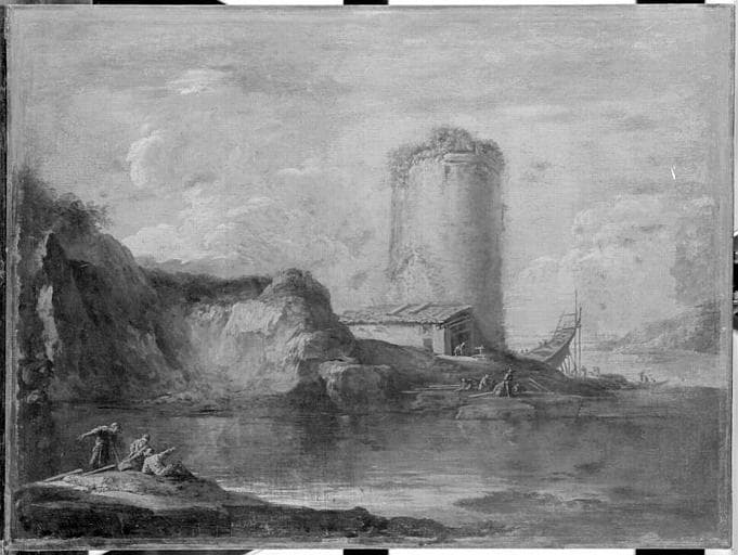 POP | Plateforme ouverte du patrimoinePAYSAGE AVEC UNE TOUR ET UNE BARQUE EN CONSTRUCTION