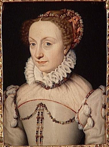 portrait (femme, Albret Jeanne d', reine de Navarre, en buste, de trois-quarts, coiffure, bijou, col : dentelle)