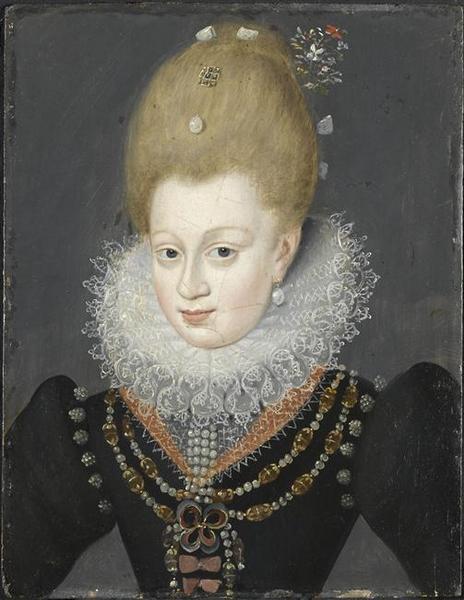 portrait (Estrées Gabrielle d', ?, femme, en buste, de trois-quarts, coiffure, col : dentelle, bijou)
