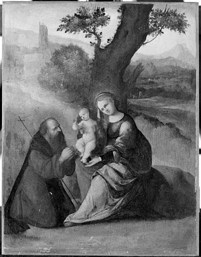 POP | Plateforme ouverte du patrimoineLA VIERGE, L'ENFANT JESUS ET SAINT ANTOINE ABBE DANS UN PAYSAGE