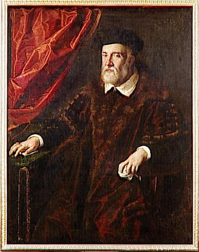 portrait d'inconnu (vieillard, assis, à mi-corps, de trois-quarts, bonnet, effet de tissu, fourrure, lettre)