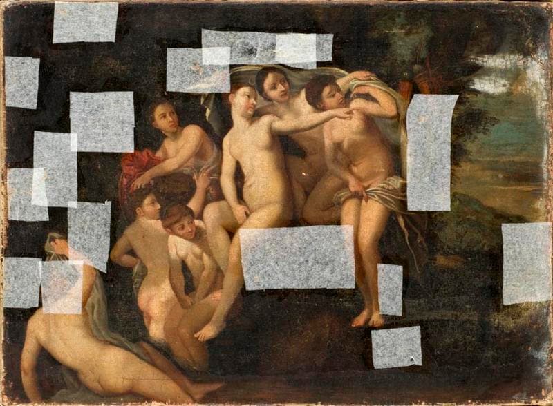 Copie partielle, manque la figure d'Actéon, du tableau de Francesco Albani, conservé au Musée du Louvre, 'Actéon et la métamorphose en cerf'
