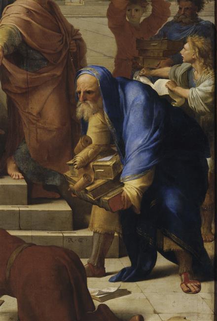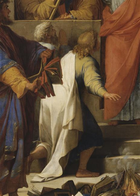 scène biblique (prédication, saint Paul de Tarse, Ephèse, livre, feu)