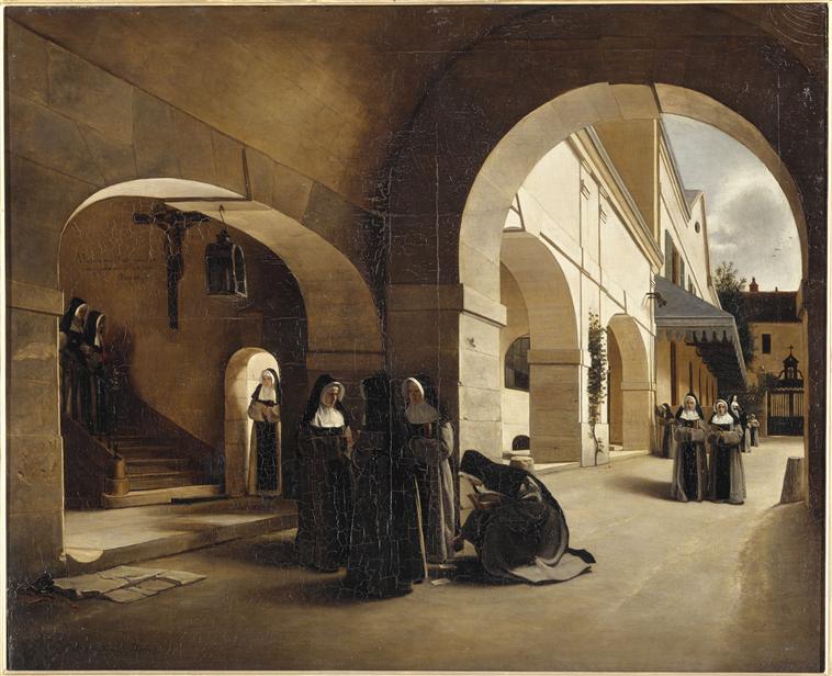 scène (religieuse, couvent, cloître, prière, crucifix, Verberie)