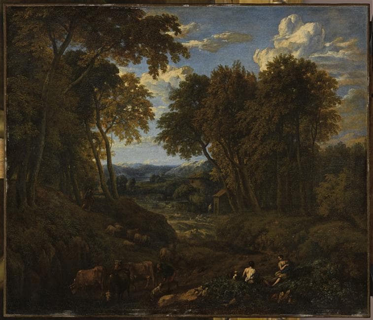 POP | Plateforme ouverte du patrimoinePAYSAGE AVEC BERGERS ET TROUPEAUX DANS UN CHEMIN FORESTIER