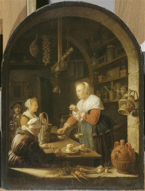 L'Epicière de village, avec le portrait du peintre à l'arrière plan ; L'Epicière du village (autre titre)