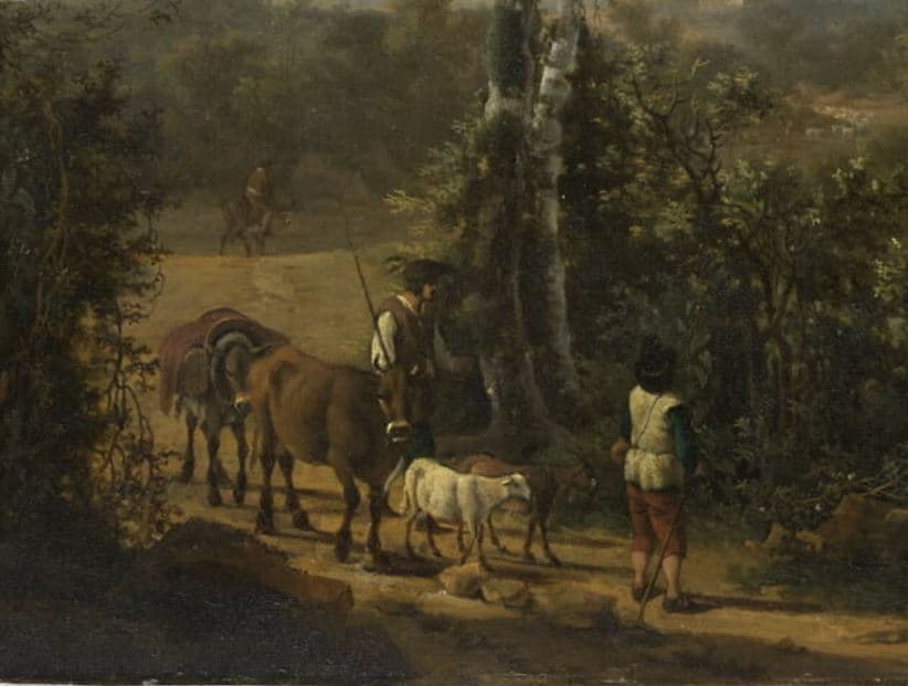 PAYSAGE AVEC PAYSANS CONDUISANT UN TROUPEAU