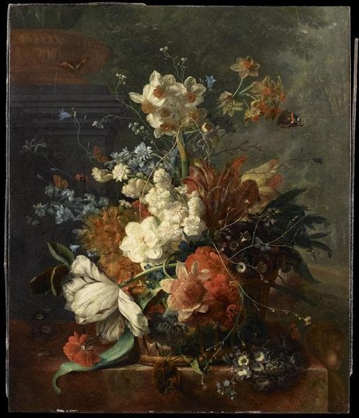 POP | Plateforme ouverte du patrimoineCorbeille de fleurs avec piédestal sur fond de parc