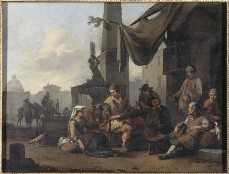 POP | Plateforme ouverte du patrimoinePAYSANS ITALIENS BUVANT A LA PORTE D'UNE HOTELLERIE