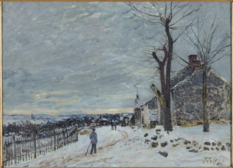paysage (neige, hiver, maison, personnage, chemin, feuillu, végétal défeuillé, Veneux-les-Sablons)
