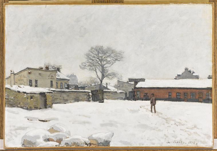 paysage (cour de ferme, neige, hiver, maison, feuillu, personnage, Marly-le-Roi)