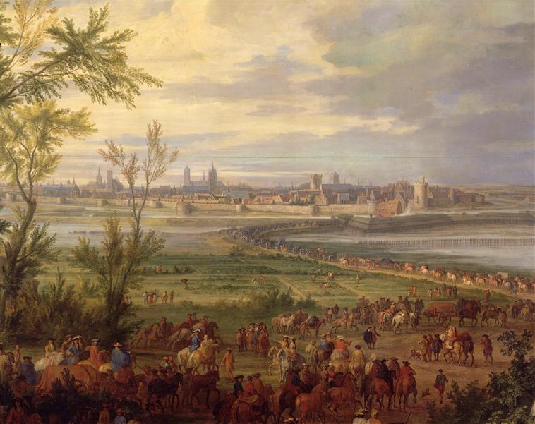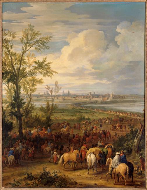 scène historique (prise de place : Ypres, Louis XIV) ; portage (cheval)