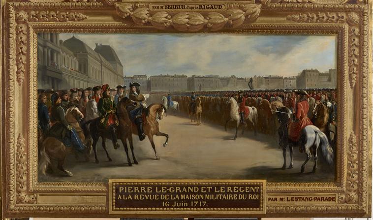 scène historique (Orléans Philippe d', Pierre le Grand, Paris, revue, cavalerie, jardin, Kourakine prince, Tessé comte de)