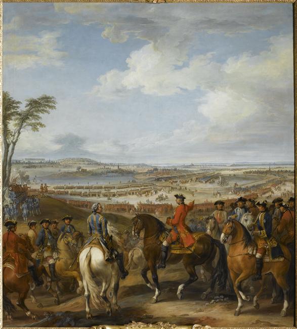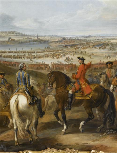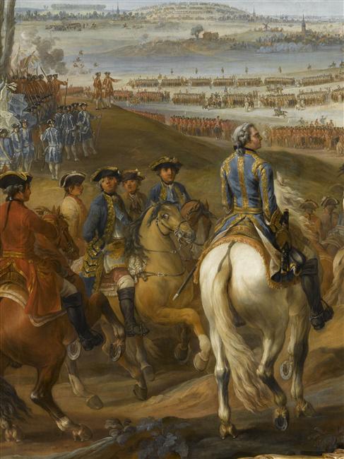 scène historique (guerre de siège : Lawfeld, Louis XV, Saxe maréchal de, bataille rangée)