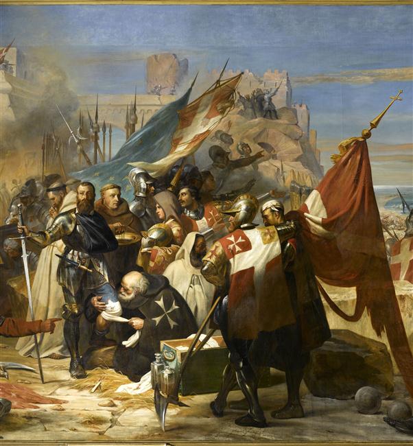 scène historique (guerre de siège : Rhodes, croisade, marine, Aubusson Pierre d')