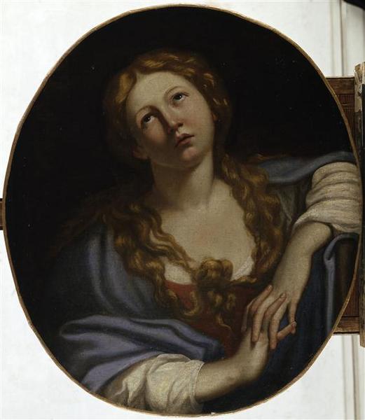 figure biblique (sainte Madeleine, femme, à mi-corps, de face, extase, prière)