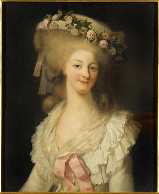 portrait (Savoie-Carignan Marie Thérèse Louise de, Lamballe Marie Thérèse Louise princesse de, femme, en buste, de trois-quarts, chapeau, fleur)