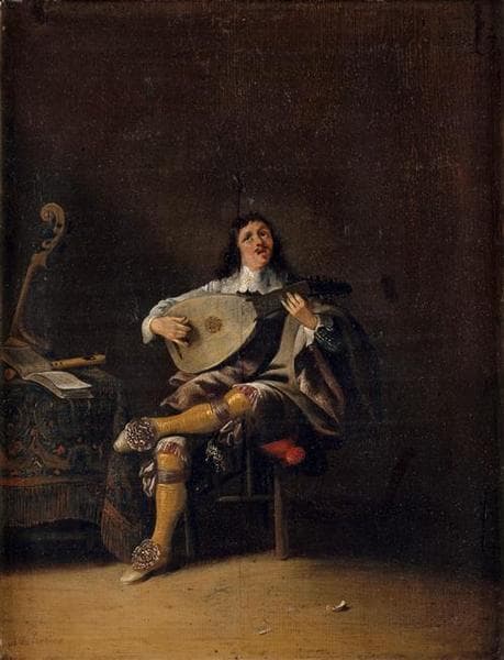 Les cinq sens, l'ouïe : homme jouant du luth