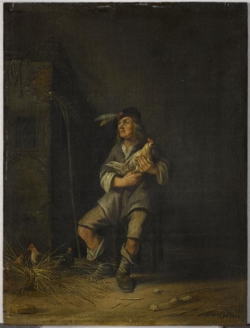 POP | Plateforme ouverte du patrimoineLES CINQ SENS, LE TOUCHER : PAYSAN TENANT UNE POULE