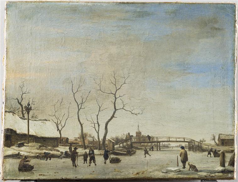 POP | Plateforme ouverte du patrimoineRivière gelée avec patineurs et joueurs de hoquet