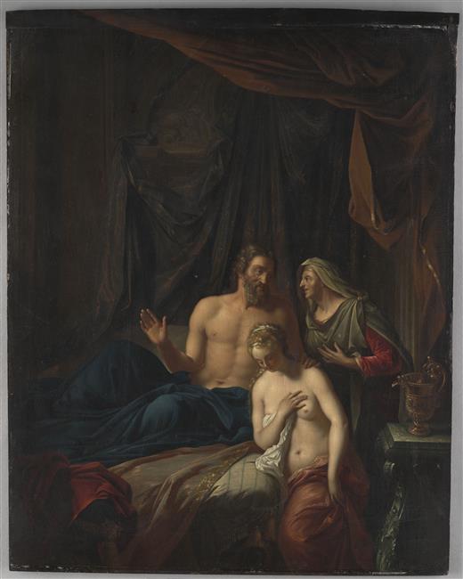 scène biblique (Sara, Agar : nudité, Abraham, présentation, tenture, aiguière)