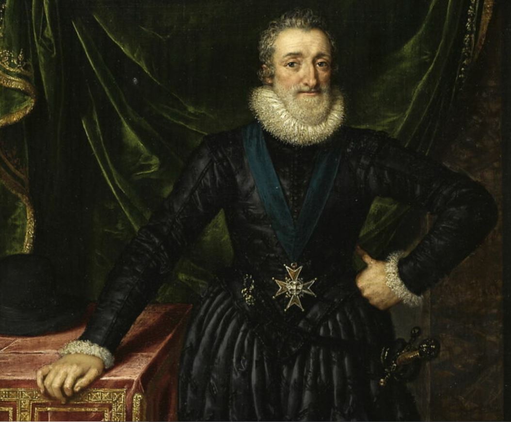 portrait (Henri IV, homme, en pied, de trois-quarts, col : dentelle, Ordre du Saint-Esprit) ; tenture