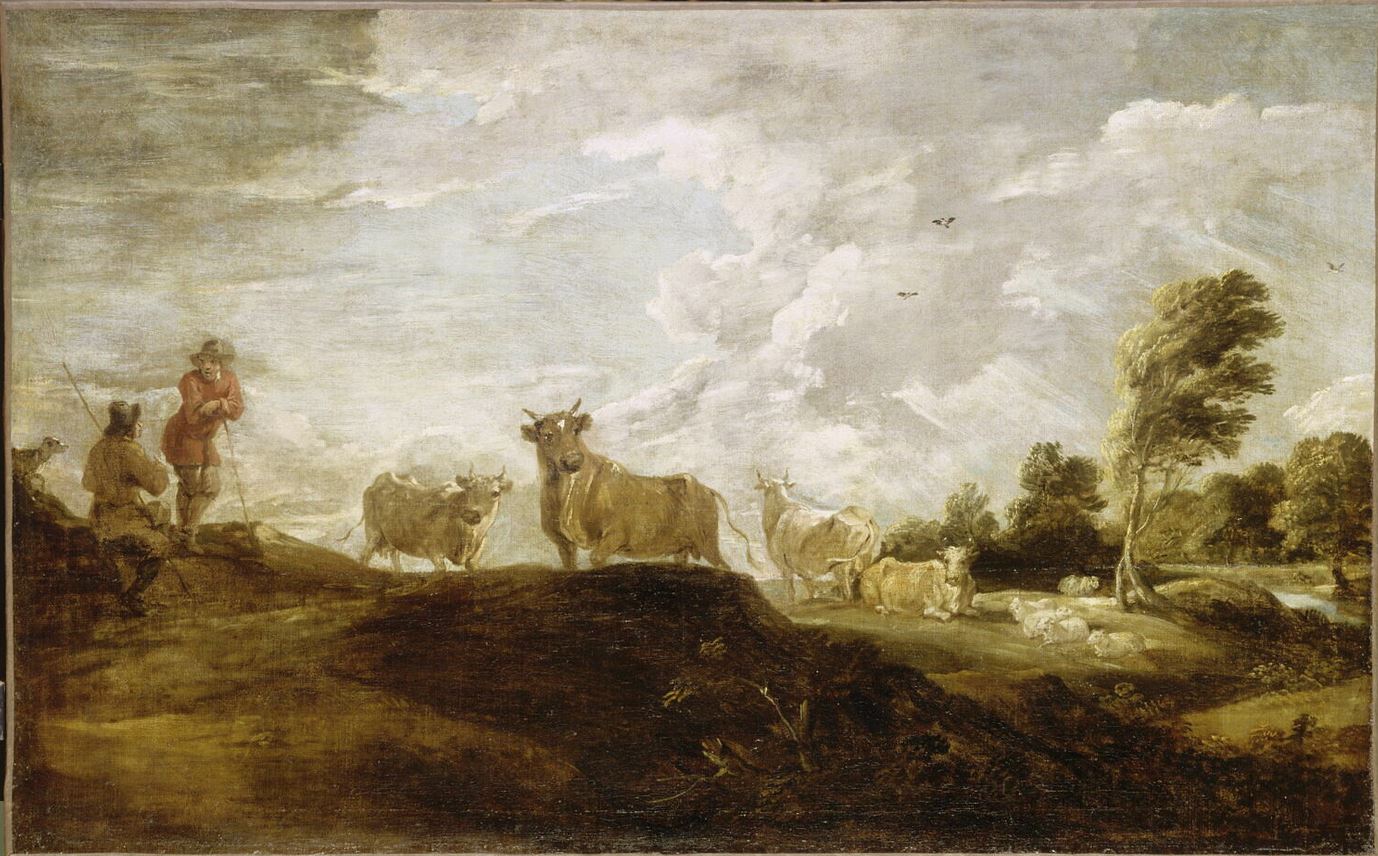 paysage (taureau, homme : garde)