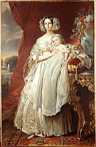Hélène-Louise-Elisabeth de Mecklembourg-Schwerin, duchesse d'orléans (1814-1858) avec le Prince Louis-Philippe-Albert d'Orléans, Comte de Paris