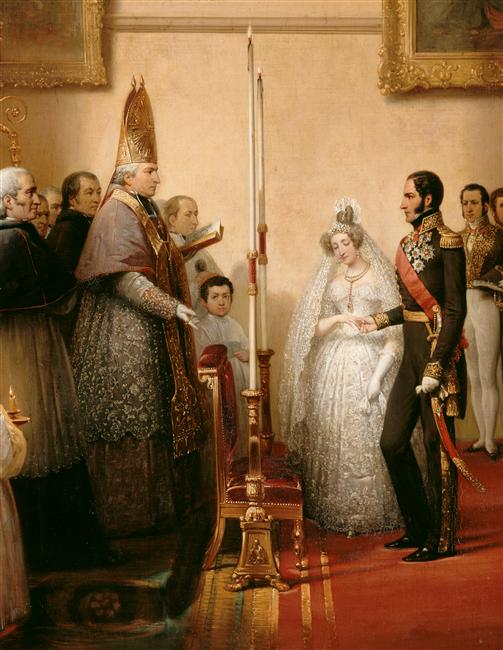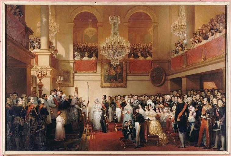 scène historique (mariage, famille, Léopold Ier de Saxe-Cobourg, Orléans Louise Marie d', château : Compiègne)