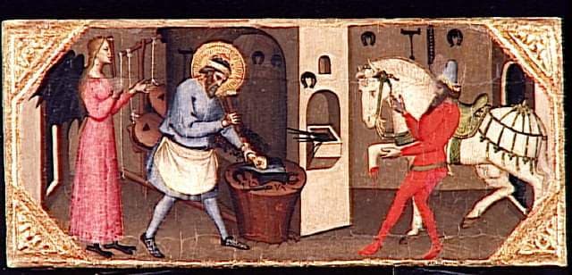 DEUX SCENES DE LA LEGENDE DE SAINT ELOI : L'EPISODE DU 'DIABLE MOUCHE' ET CELUI DU CHEVAL FERRE