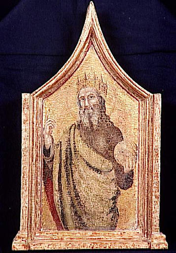 ensemble dispersé ; peinture déposée ; OEUVRES COMPLEMENTAIRES : AU WORCESTER ART MUSEUM, DEUX PANNEAUX LATERAUX (SAINT FRANCOIS ET SAINT PHILIPPE) ; DANS UNE COLLECTION PRIVEE ROMAINE, DEUX PANNEAUX LATERAUX (SAINT JACQUES ET SAINT PIERRE) ; AU FOGG ART MUSEUM DE CAMBRIDGE, PANNEAU CENTRAL DE LA PREDELLE (PIETA) ; DANS UNE COLLECTION PRIVEE ROMAINE, PANNEAUX DE PREDELLE (SAINT EVEQUE, SAINT COSME) ; AU COURTAULD INSTITUTE DE LONDRES, PANNEAU DE PREDELLE (SAINT LAURENT) ; A HEERENBERGH, COLLECTION VAN HEEK, PINACLE (SAINT PAUL ET SAINTE LUCIE) ; AUTREFOIS DANS LACOLLECTION GNECCO DE GENES, PINACLE (SAINT JEAN BAPTISTE)