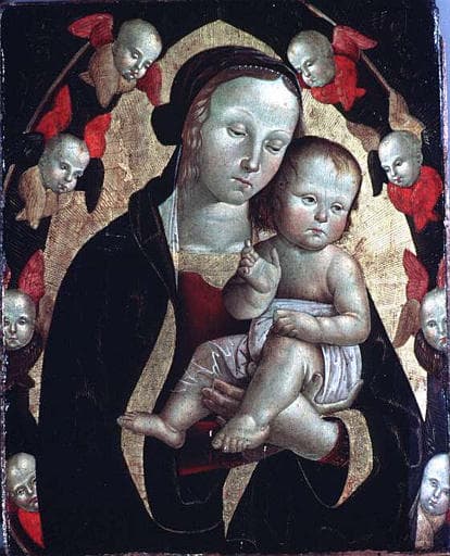 nombreuses Vierges à l'enfant dans une gloire de séraphins, de compositions très semblables (Avignon, musée du petit palais no 286) , dont le prototype peut être attribué à Pérugin jeune