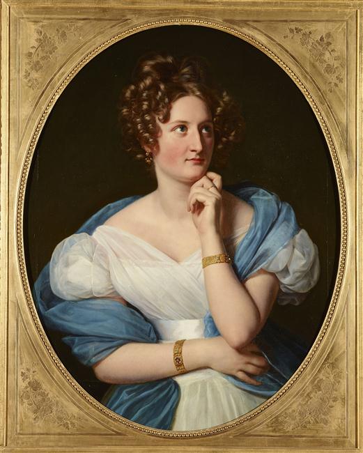 portrait (Gay Delphine, femme de lettres, à mi-corps, de trois-quarts, robe, coiffure, femme, Girardin Delphine de)