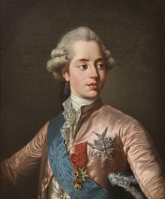 Portant le ruban bleu et la décoration de l'ordre du Saint-Esprit, ainsi que celle de la Toison d'or. Répétition en buste d'un portrait en pied peint vers 1779 disparu