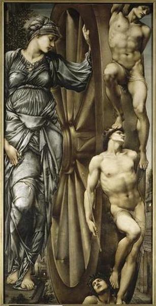 scène (allégorie : fortune, roue, homme : nu, roi, sceptre, couronne, esclave, esclavage, couronne : laurier, femme)