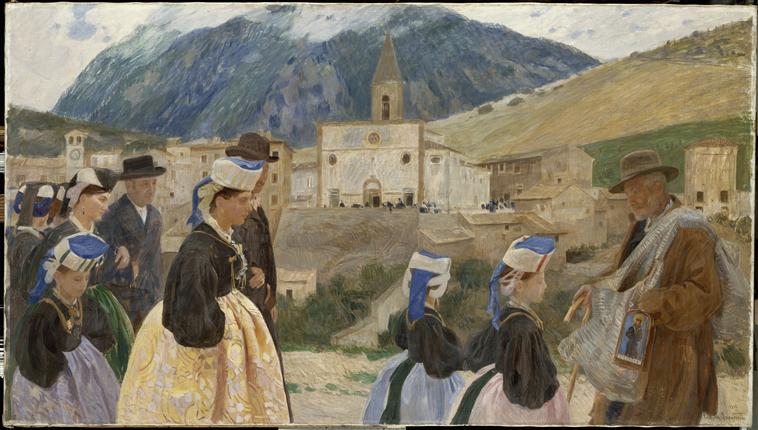 scène (Abruzzes, mariage, fillette, vieux, homme, femme, village, montagne, église)