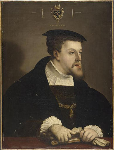 portrait (Charles Quint, en buste, de trois-quarts, col : dentelle, bijou, gant, livre, Ordre de la Toison d'or)