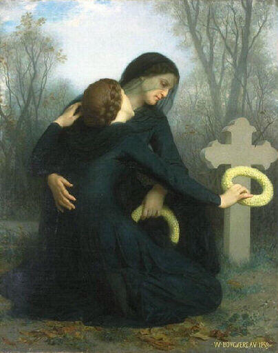 iconographie rare dans l'oeuvre de Bouguereau, car les personnages portent des vêtements contemporains