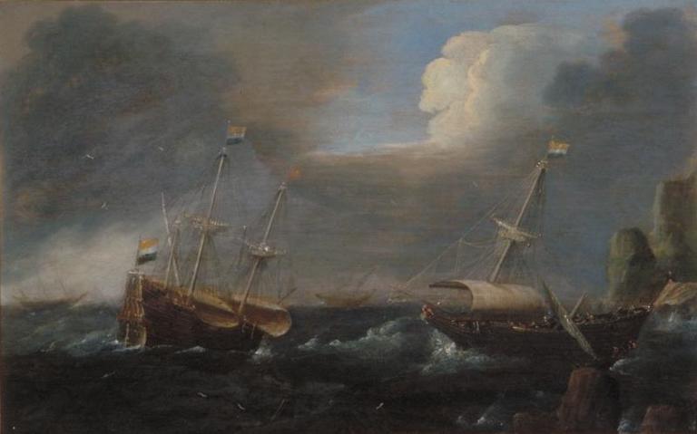 scène (mer, bateau, marin, voilier, drapeau (Hollandais))