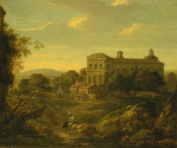 le musée des beaux-arts de Bordeaux possède deux paysages du 17e, dont l'un (la basilique Saint-Sébastien ) est dit 'avec fabriques' ont sans doute fait partie d'une série de vues de mêmes dimensions montrant les basiliques de Rome. L'inscription au revers 'Bertieru' et les étiquettes portant la date 1820 paraissent faire référence à un collectionneur ou à une vente plutôt qu'à un auteur inconnu puisqu'aucun artiste de ce nom étrage n'a pu être retrouvé. L'identification du second sanctuaire est due à F. Zeri (com. or); cette basilique San Sebastiano est située sur la voie Appienne et sa façade à trois arcades, visible ici, est l'oeuvre de Flaminio Ponzio (v. 1560-1613) et de Giovanni Vasanzio (Jan van Santen, v. 1550-1621), et fut achevée en 1612