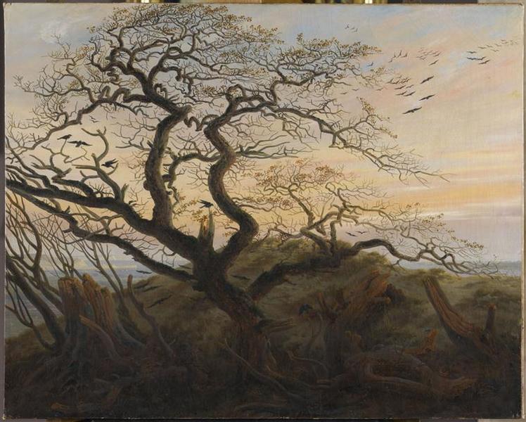 paysage (arbre, corbeau, bord de mer, Baltique, effet de soleil)
