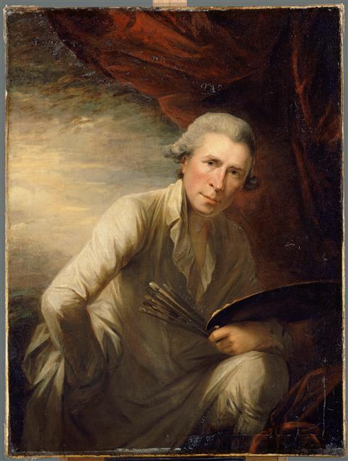 autoportrait (Romney George, ?, homme, à mi-corps, de trois-quarts, peintre, Anglais, palette) ; fond de paysage