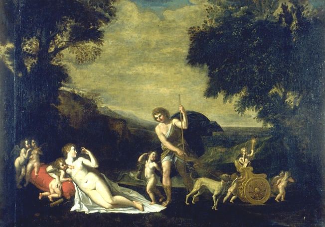 figures mythologiques (Vénus, Adonis, Eros, char, chien)