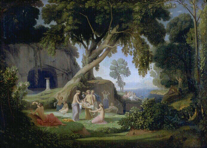 POP | Plateforme ouverte du patrimoinePaysage avec l'enfance de Bacchus ; Bacchus enfant élevé par les nymphes dans l'île de Naxos (autre titre)