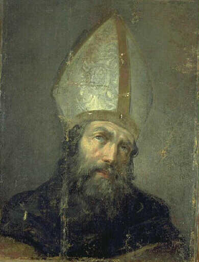 figure (homme, tête, évêque, mitre)