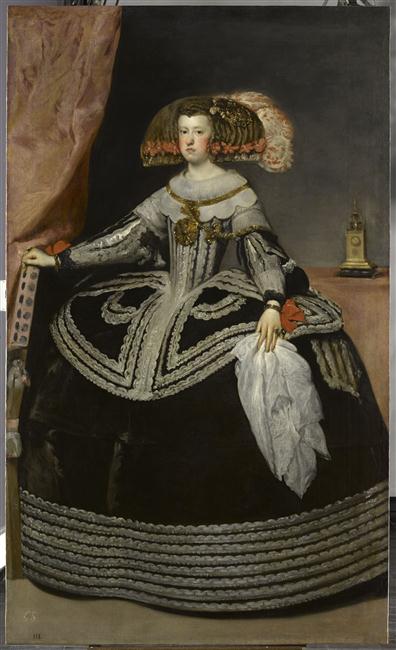 portrait (Marie-Anne d'Autriche, reine d'Espagne, en pied, de face, draperie, Espagnol, pendule)