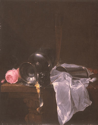 POP | Plateforme ouverte du patrimoineRoses, coupe et timbale avec deux verres sur une table ; Nature morte à la rose (autre titre)