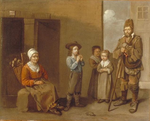 portrait collectif (famille, vieille, panier, garçon, flûte à bec)